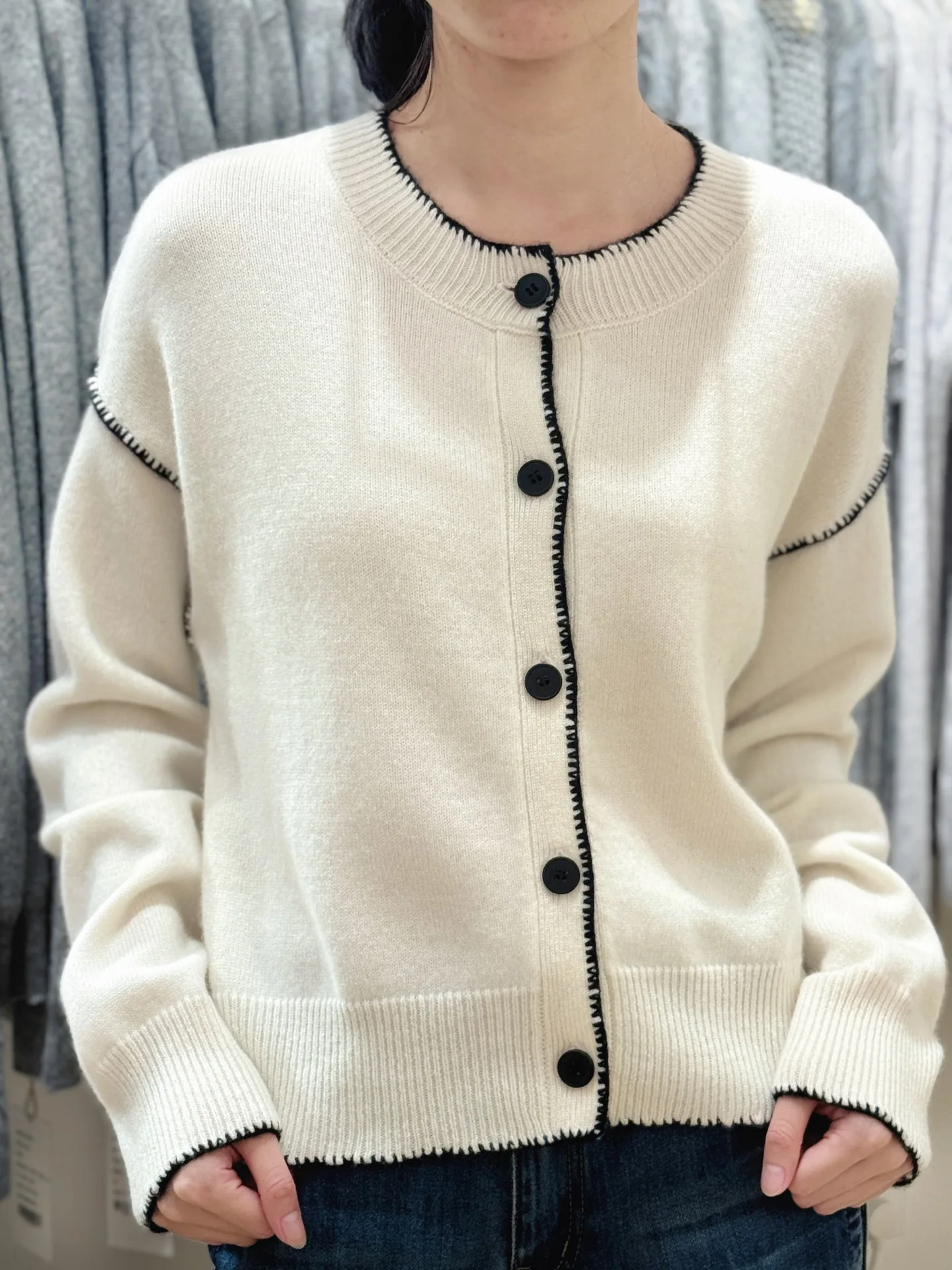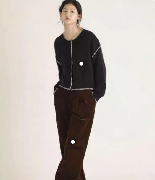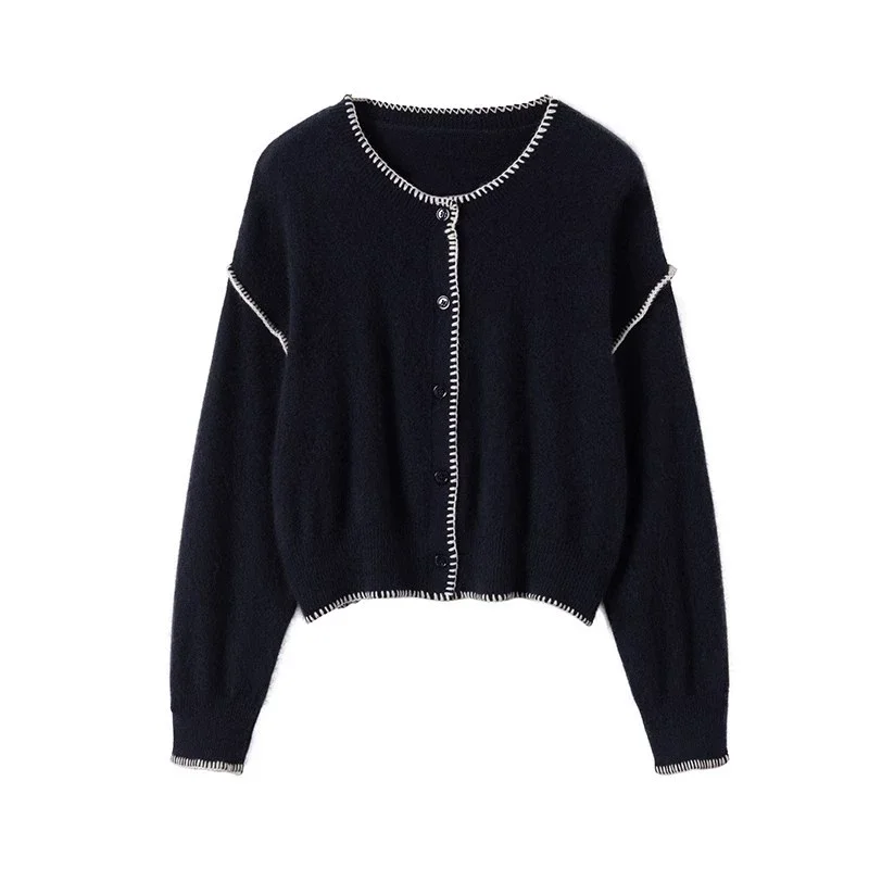Women's Casual Cardigan Sweater for All Seasons Fashion Knitted Thin Cashmere Front Logo Anti-Pilling Breathable Quick Dry